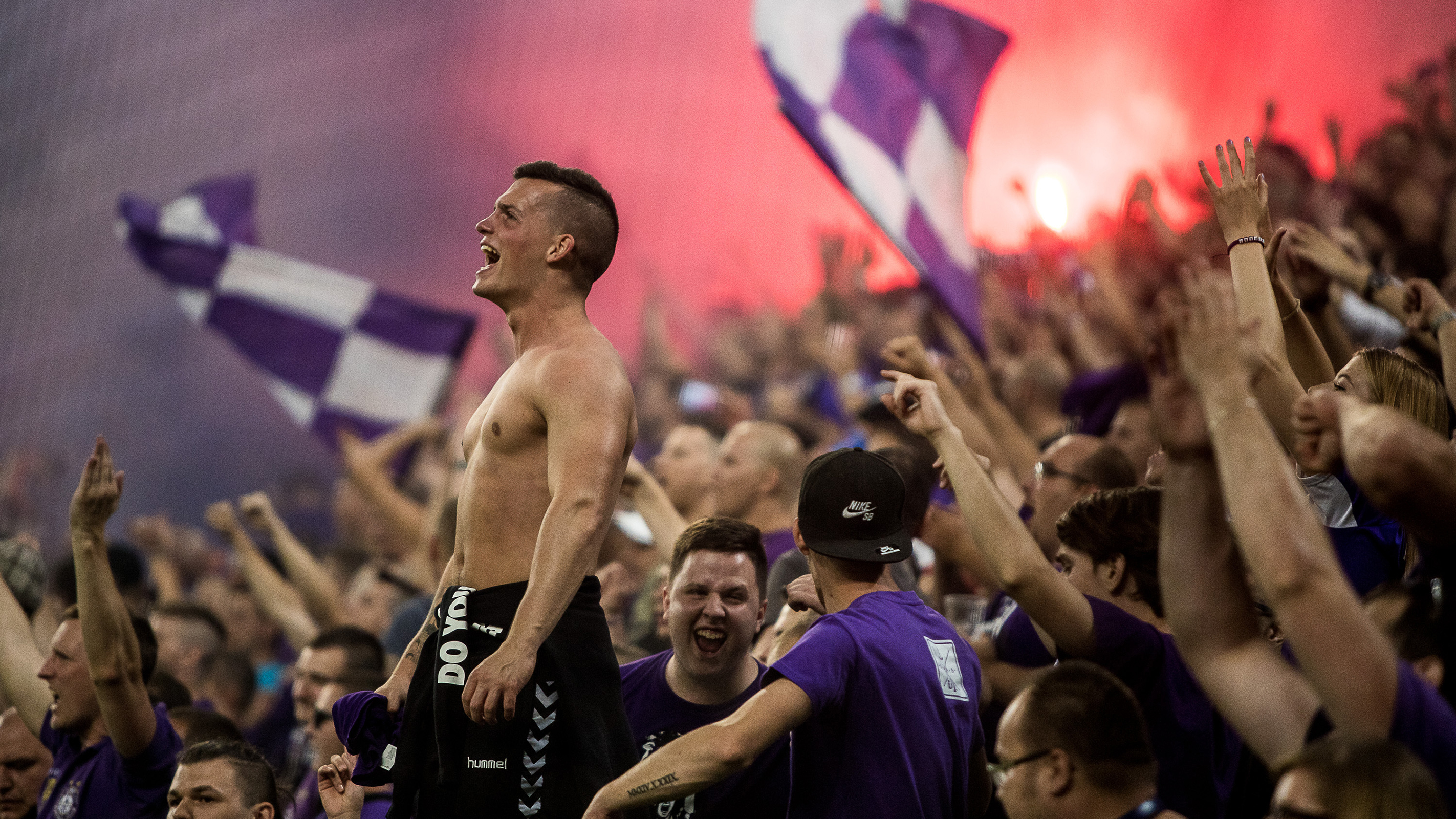A lefújás után a hazai drukkerek levetették a mezeket a fehérvári játékosokkal.