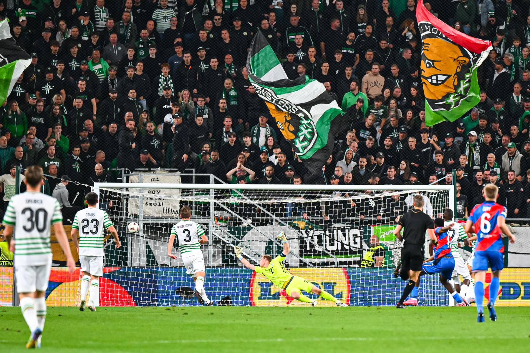 Egy perc sem telt el a mérkőzésből, máris ziccerbe került a Plzen, de a csehek támadója kecsegtető helyzetből célt tévesztett és Dibusz kapuja mellé lőtt.