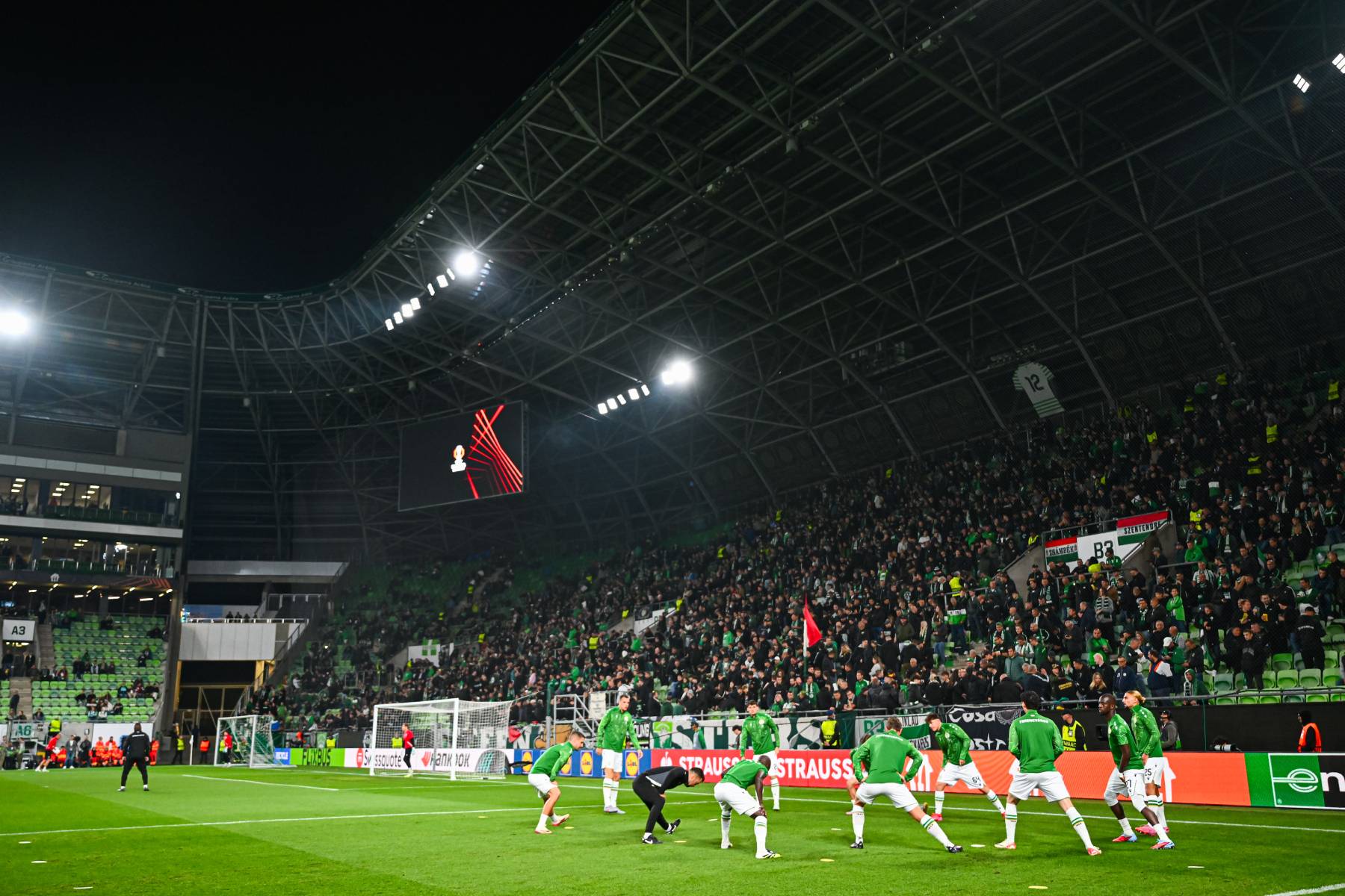 A Ferencváros a 32. percben jutott el először kapura lövésig, Tóth Alex jobboldali szabadrúgását követően Keita próbálkozott, de kísérlete a kapu mellé-fölé szállt. Ötlettelennek és az ellenfélénél lassabbnak tűnt a vendéglátók futballja, nem sokkal a szünet előtt pedig még nehezebbé vált a helyzetük: Makreckis a rivális térfelén elkövetett, érthetetlen szabálytalanság miatt megkapta a második sárga lapját és a játékvezető kiállította.