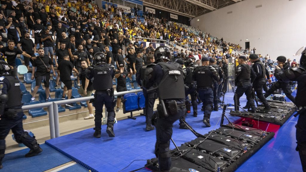 A meccs végül több mint harminc perc kényszerszünet után folytatódott, de az MTI azt írta, a játékvezetők és az európai szövetség által delegált hivatalos személyek tájékoztatták a helyi szervezőket, hogy újabb rendbontás esetén végleg lefújják a meccset.
