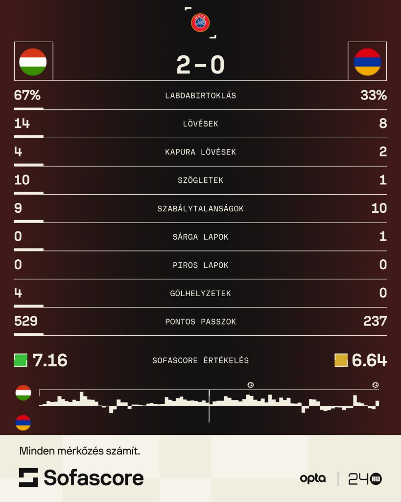 A magyar labdarúgó-válogatott 2-0-ra legyőzte szombaton Örményországot a világbajnoki selejtezők 3. fordulójában.