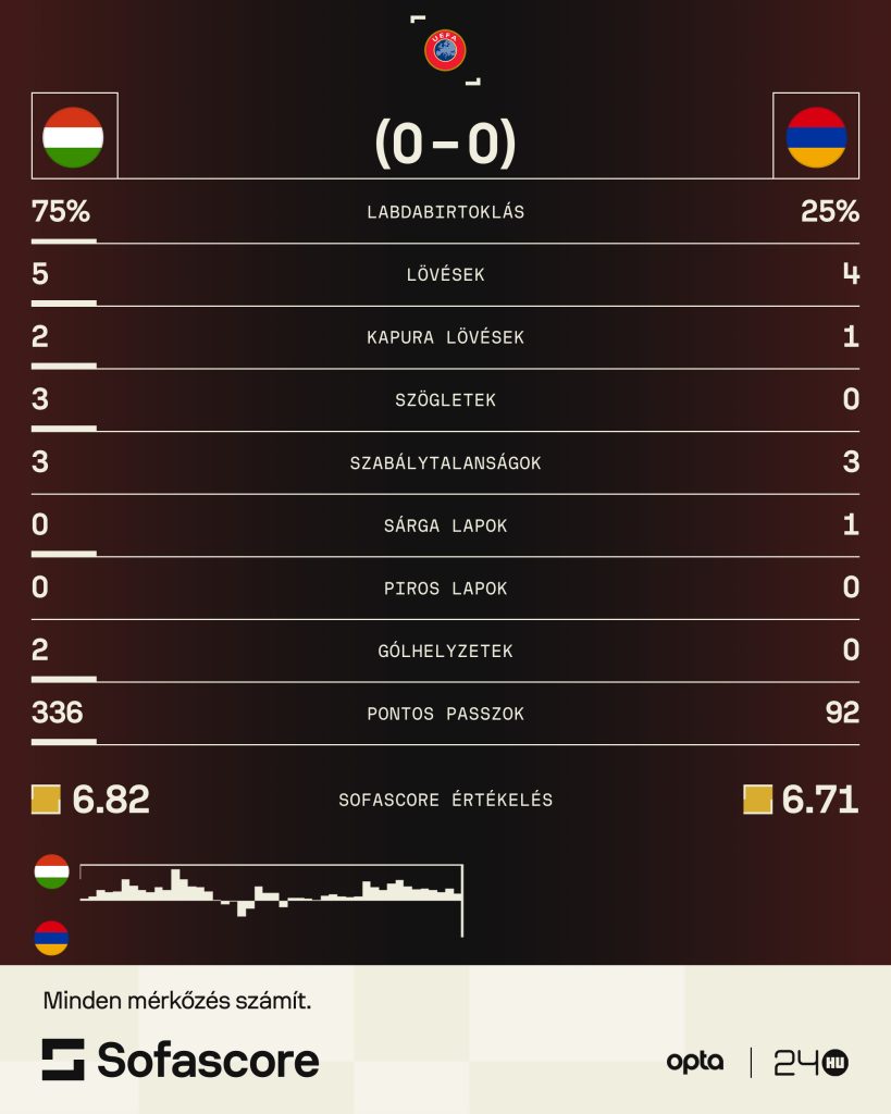 Azonnal cseréltek az örmények, de lendületben maradt a hazai csapat, Szoboszlai szabadrúgását picivel kapu mellé bólintotta Willi Orbán, nyomtak tovább a magyarok. Egy eladott labda után viszont Tigran Barszegjan került nagy helyzetbe, majd a saját szögletünkből kontrázott az ellenfelünk, de szerencsére Tóth Balázst találták telibe a lövésnél.