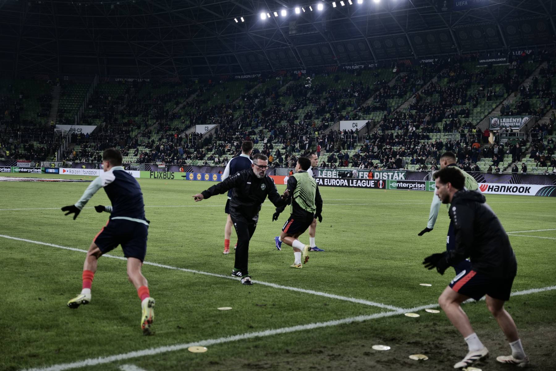 Robbie Keane vezetőedző egyetlen helyen változatott a Ferencváros kezdőcsapatán a múlt héten játszott razgradi első mérkőzéshez képest. A magyar bajnok ezúttal is két csatárral áll fel, viszont Yusuf mellett ezúttal Lenny Joseph kap lehetőséget Franko Kovacevic helyett.