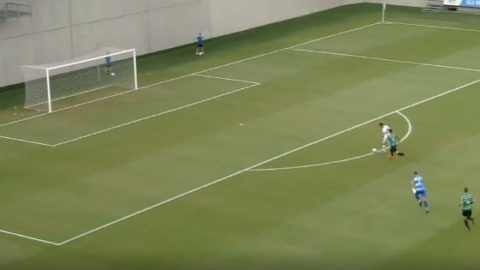Ritka nagy potyagól esett az NB II-ben Dvorschák a félpályáról emelt a hálóba. RGy 2019. 08. 08. 08:59 sport