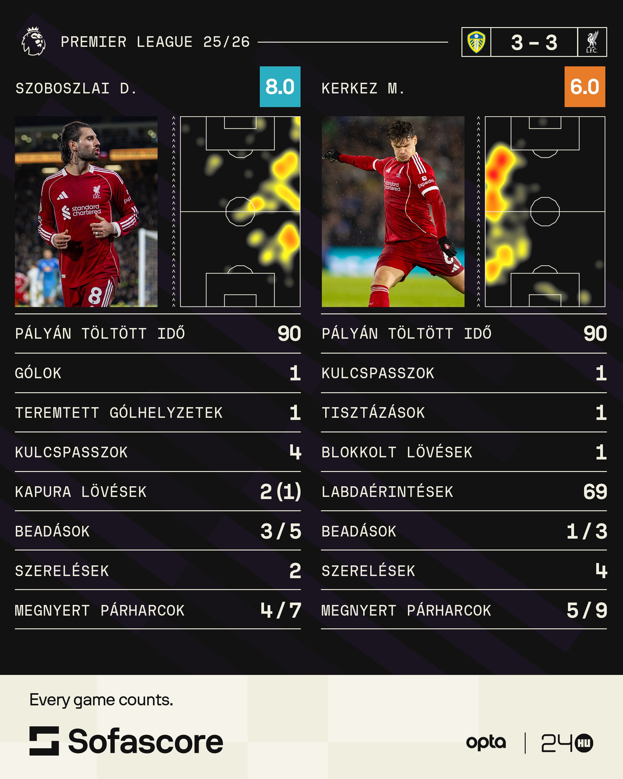 Szoboszlai Dominik gólt szerzett, de a Liverpool, amely 2-0-ra és 3-2-re is vezetett a Leeds United otthonában, végül döntetlent játszott. Kerkez Milos is végigjátszotta a mérkőzést.