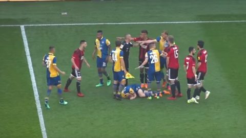 Kalmár odarúgott, földre vitték, elszabadult a pokol – VIDEÓ Nem mindennapi közjáték és durva adok-kapok a DAC-meccsen: négy percen belül három piros. Rangadó 2018. 05. 06. 11:32 kalmár