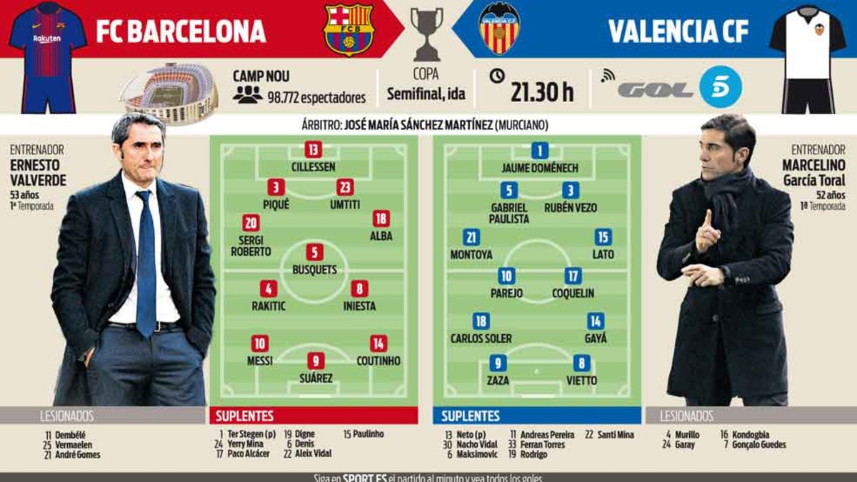 Bombaerős kezdővel készül a Barca a Valencia elleni kuparangadóra Hazai pályán kezdik az elődöntőt a katalánok. Rangadó 2018. 02. 01. 08:25 barcelona